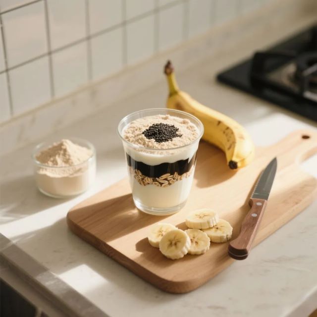 ④ 冷藏1小時(shí),口感媲美蛋糕! Tips:燕麥可替換為蛋糕胚,豆?jié){粉換成可可粉更驚艷。