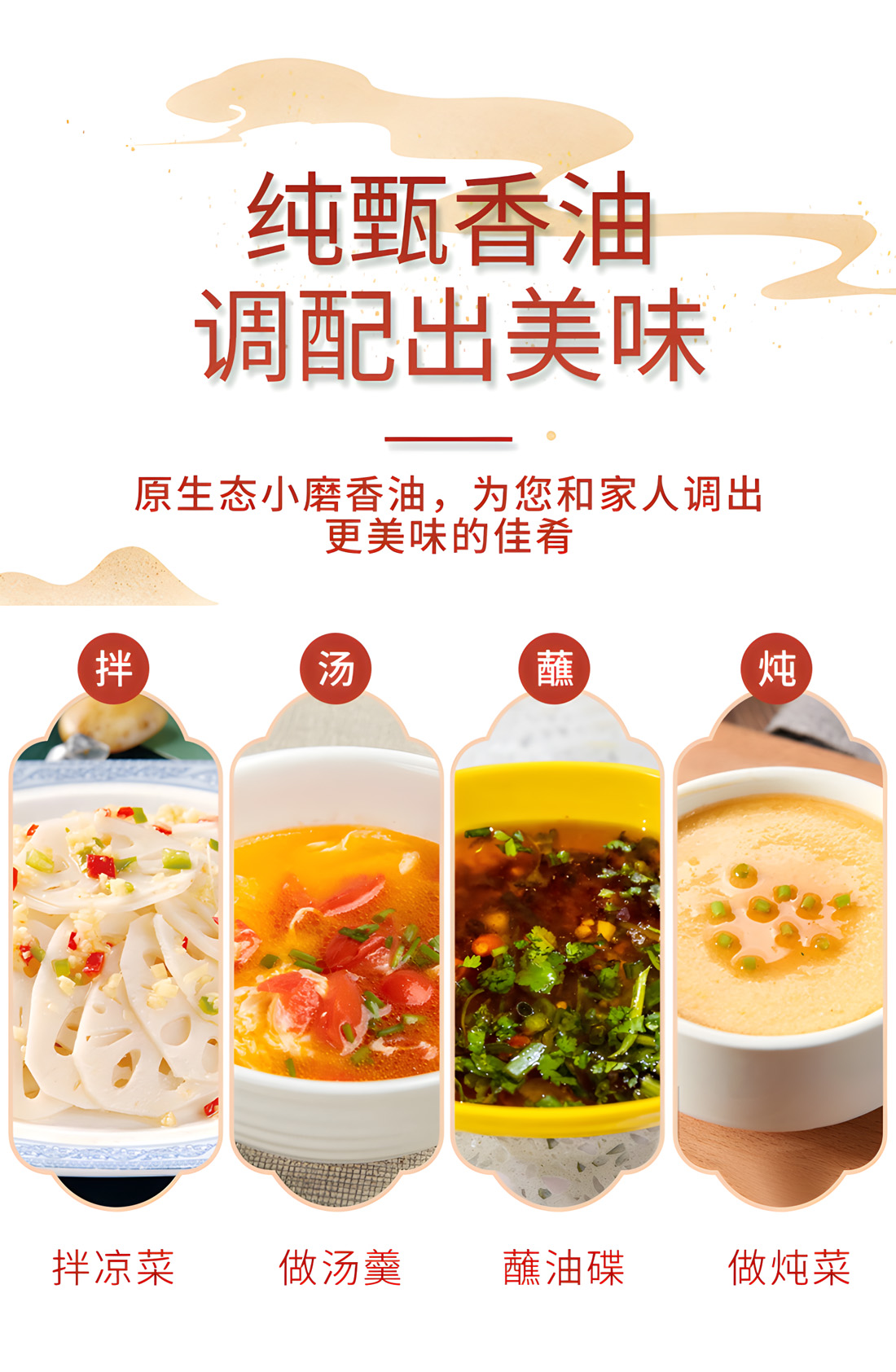 實(shí)惠大瓶裝,家庭自用更合適,涼拌、調(diào)餡、炒菜,出鍋之前加香油,只需一滴,輕松烹飪美味佳肴!